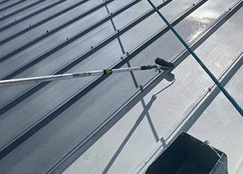 カバー工法での施工例。工事屋根に設置してある設備は塗装で補修。
