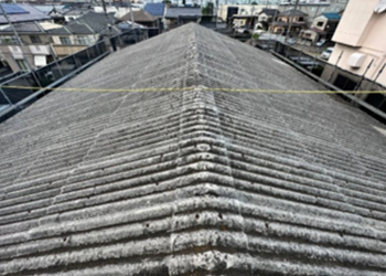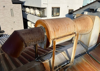 カバー工法での施工例。工事屋根に設置してある設備は塗装で補修。