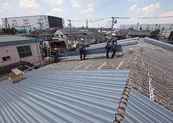 建築板金工事会社として、これまで100件以上の工場・倉庫の屋根工事実績を有しており、安心して屋根工事をお任せていただいております。